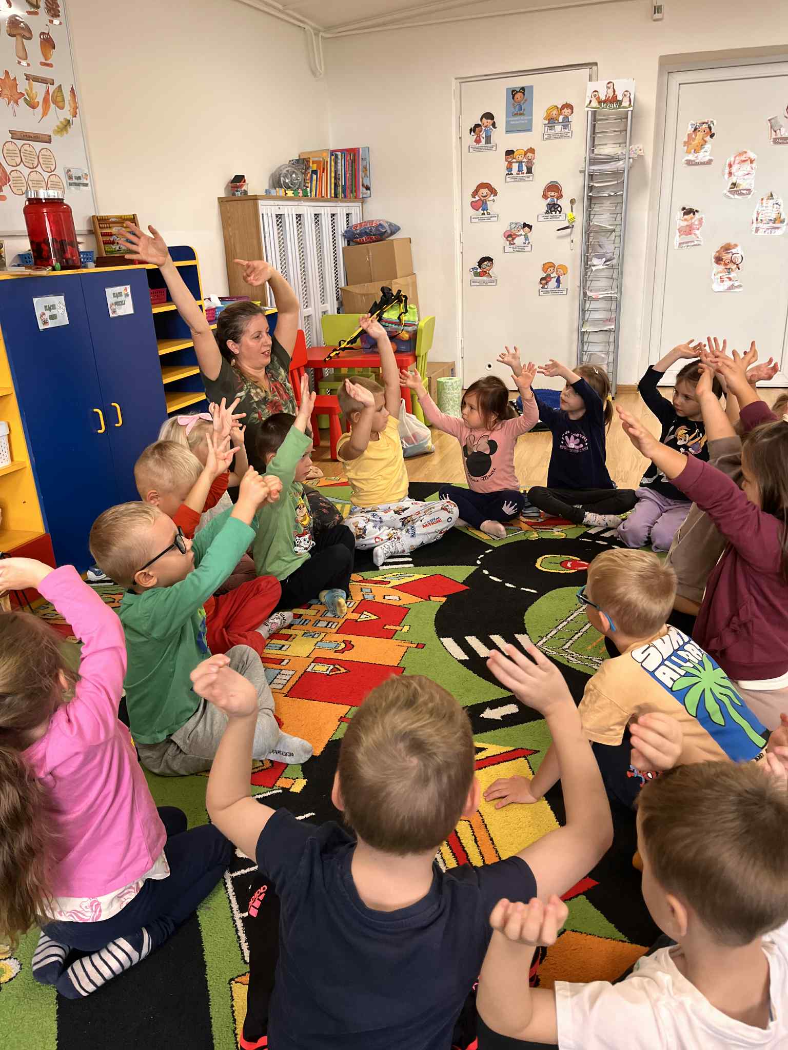 Zajęcia z fizjoterapeutką Panią Anną Gawarzewską w grupie Jeżyki, Wiewiórki i Jagódki