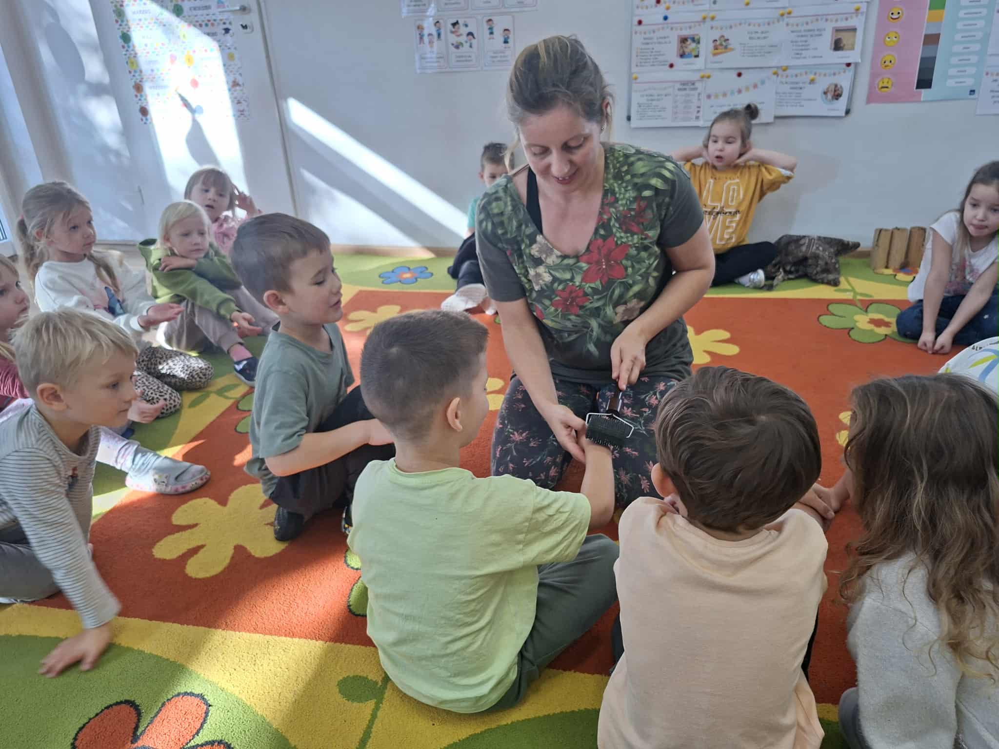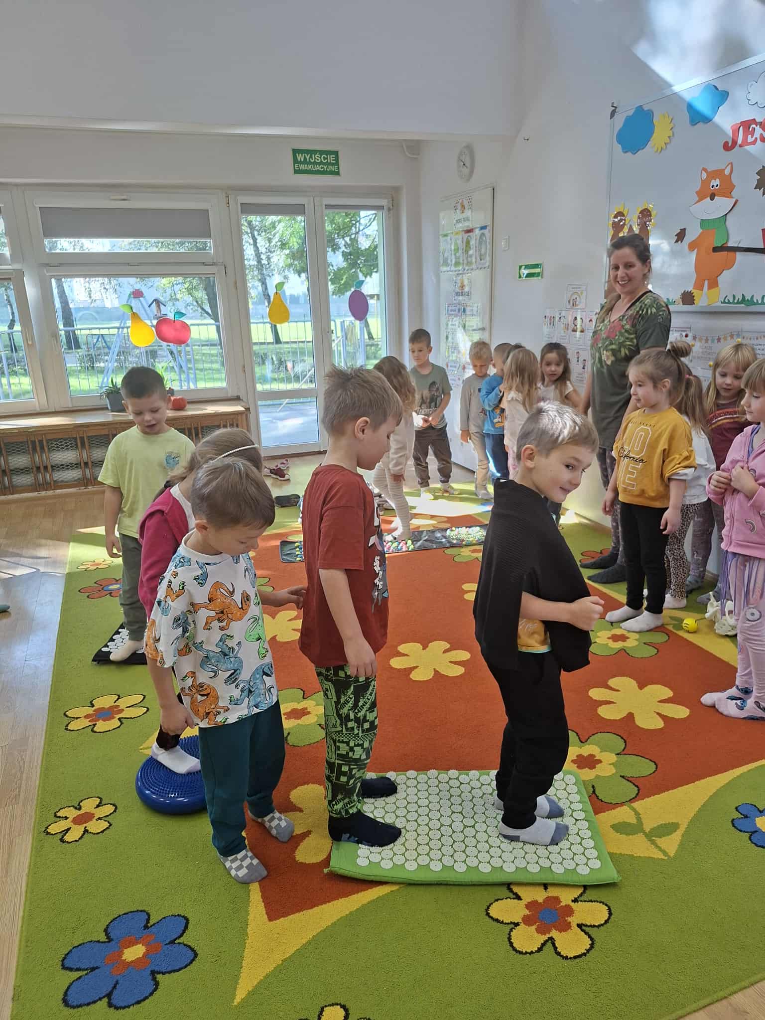Zajęcia z fizjoterapeutką Panią Anną Gawarzewską w grupie Jeżyki, Wiewiórki i Jagódki